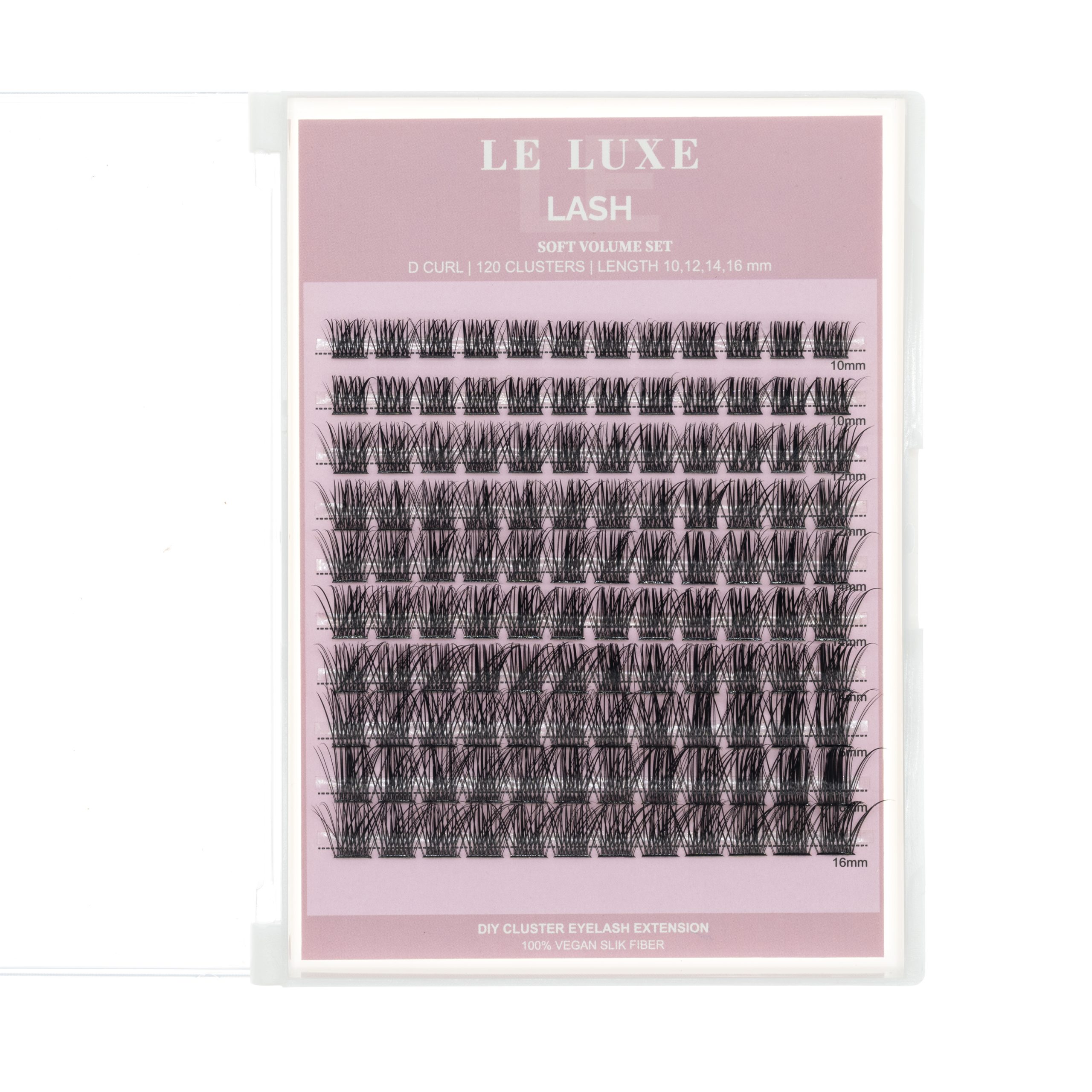Featuring 120 lightweight vegan silk D Curl lash clusters in 10–16mm lengths, this set lets you create a subtle, fluttery, softly voluminous look that enhances your eyes without overpowering them.