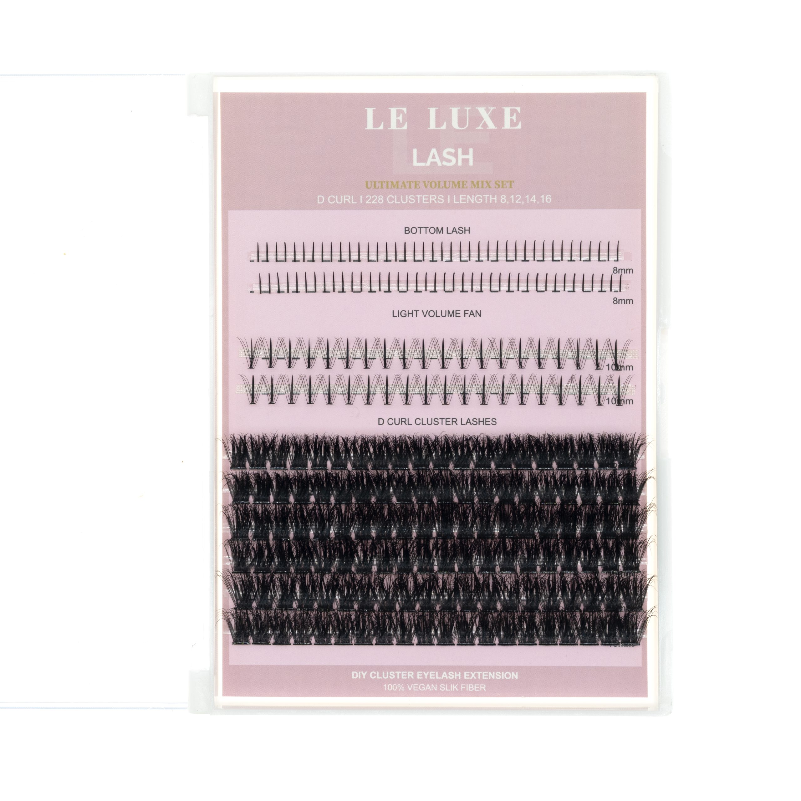 Featuring 228 ultra-fluffy vegan silk D Curl lash clusters and volume fans in 8–16mm lengths, this kit lets you create a custom, multidimensional lash look effortlessly.
